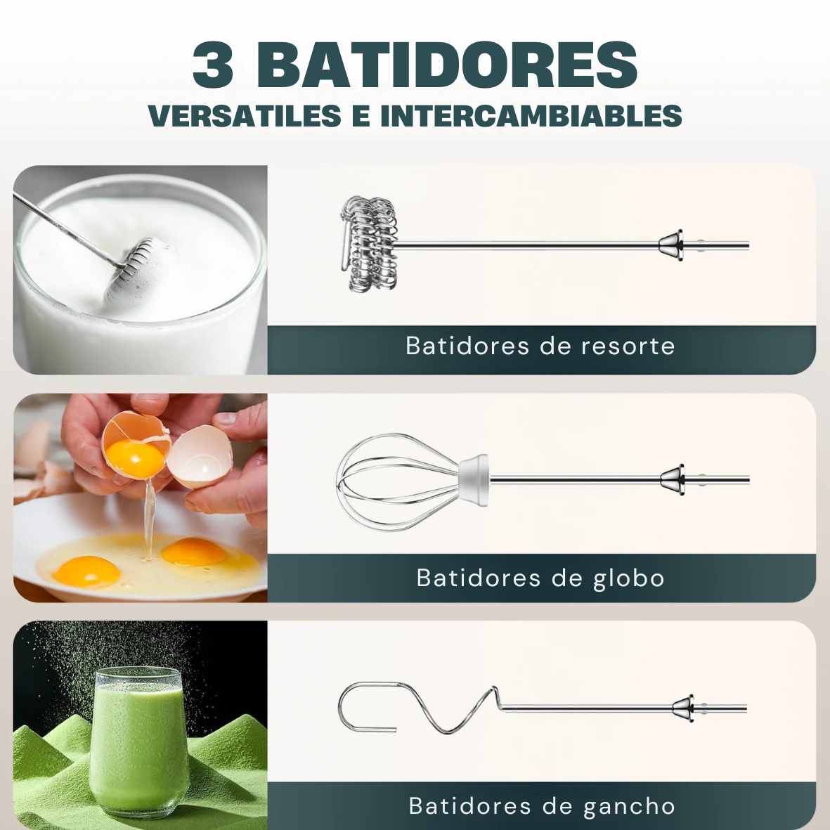 WHIPPRO® ESPUMADOR Y BATIDOR CON 3 CABEZALES INOXIDABLES