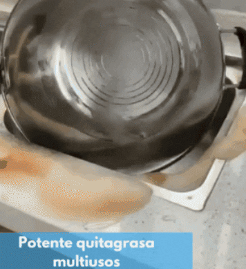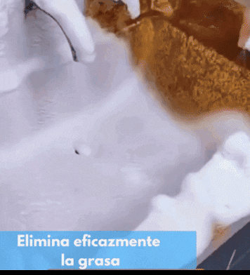 - En segundos empiezas a ver como la grasa se desprende. Ten en cuenta que si la zona no se ha limpiado por años o tiene mucha grasa acumulada, puedes dejar actuar durante más tiempo o hacer doble limpieza.