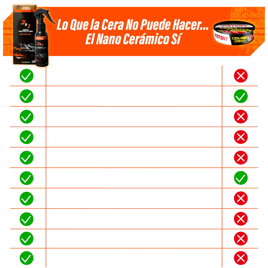 👉 Gracias a su tecnología hidrofóbica y anti-UV, repele agua, barro y polvo mientras bloquea los rayos solares que desgastan la pintura. Además, ofrece durabilidad extrema de hasta 5 años, superando a cualquier cera o sellador convencional.