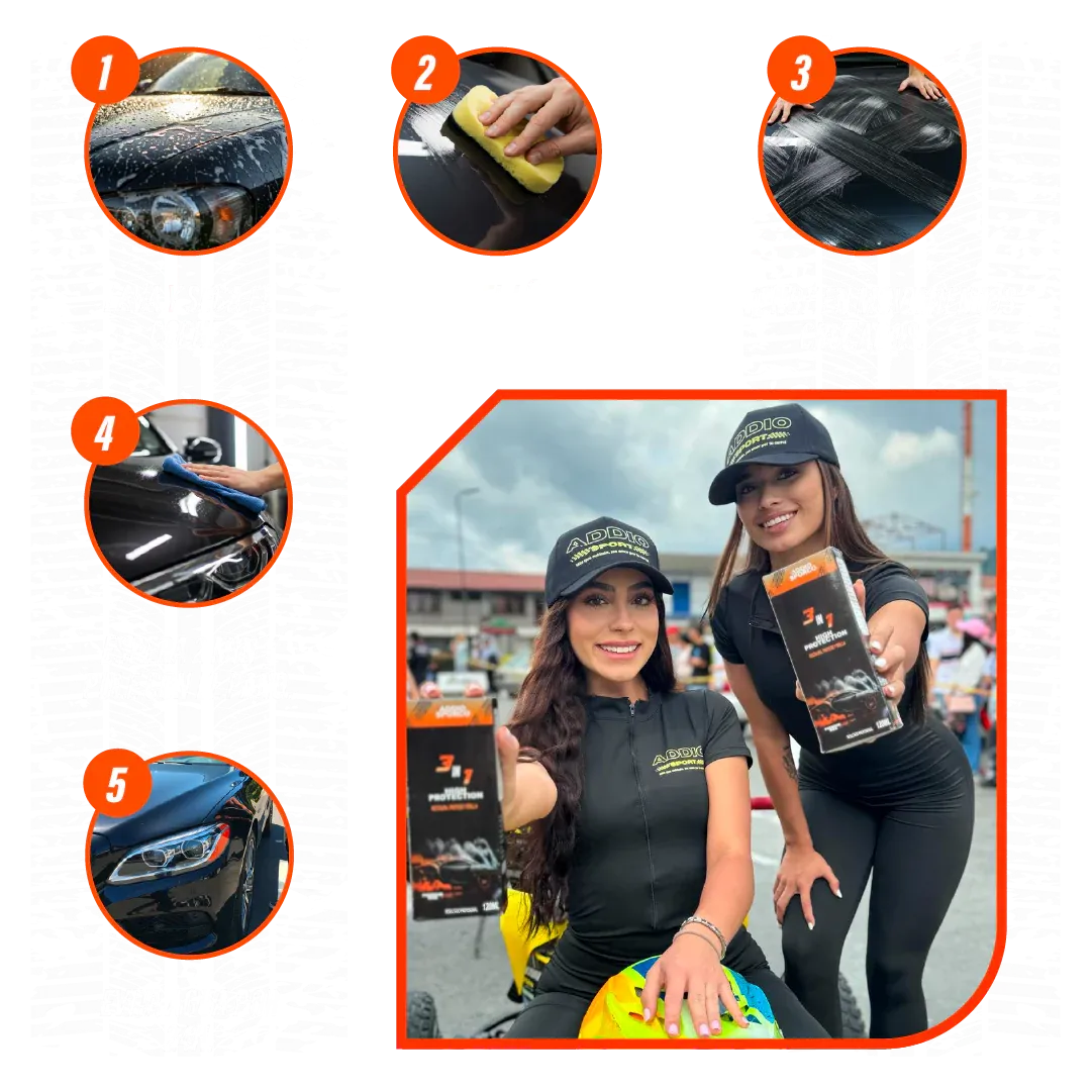 👉 Incluye todo lo necesario para una aplicación sencilla y rápida en casa, sin herramientas ni experiencia previa. Reduce la frecuencia de lavados y detallados costosos, ahorrando tiempo y dinero.
