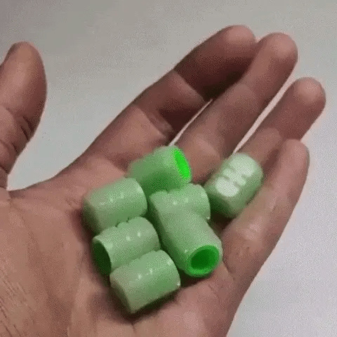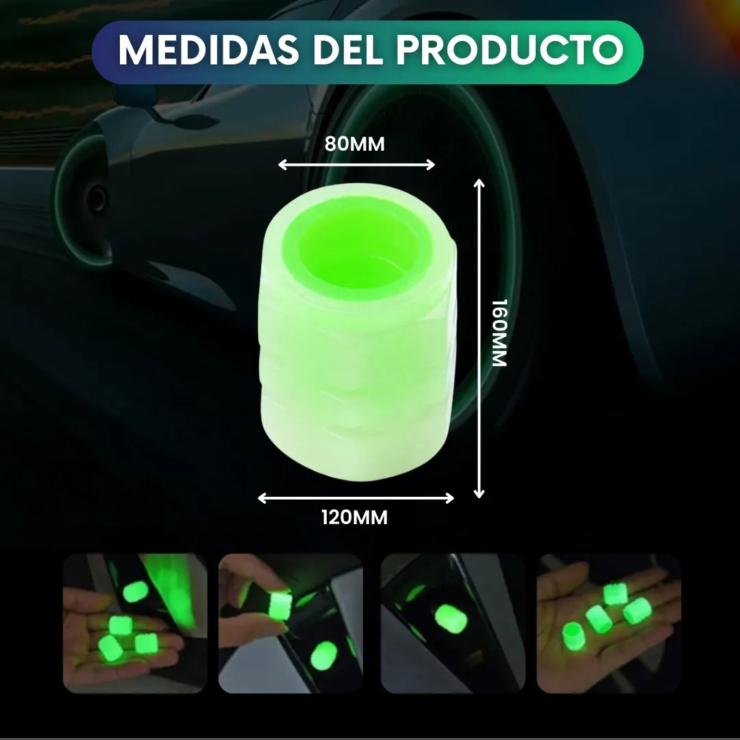 ✅ Función: Brillo en la oscuridad (tras exposición a la luz) y protección de válvula (polvo/agua).